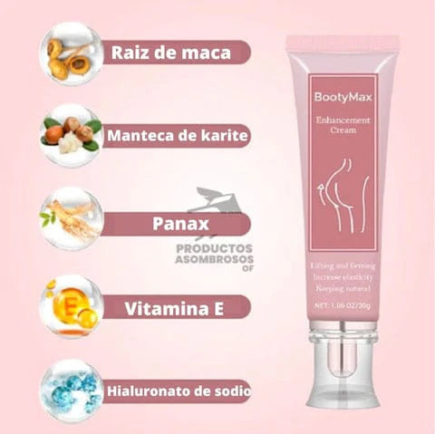 🍑 Contiene una mezcla patentada de ingredientes botánicos que han demostrado suavizar, tensar y dar volumen a los glúteos, los muslos y las caderas.